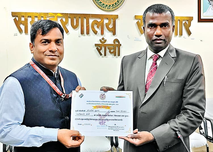 रांची. उपायुक्त मंजूनाथ भजंत्री ने समाहरणालय के ब्लॉक-ए सभागार में राष्ट्रीय मतदाता दिवस पर वरीय पदाधिकारियों और कर्मचारियों के साथ मतदाता प्रतिज्ञा ली. इस दौरान लोकसभा चुनाव 2024 एवं विधानसभा सभा चुनाव 2024 में बेहतरीन कार्य करने वाले अधिकारियों और कर्मचारियों को जिला प्रशासन द्वारा प्रशस्ति पत्र प्रदान किया गया. उपायुक्त ने कहा कि आपका मतदान सिर्फ मतदान नहीं, यह राष्ट्र और राज्य निर्माण की अहम जिम्मेदारी है. मतदान जरूर करें और लोगों को भी जागरूक करें..