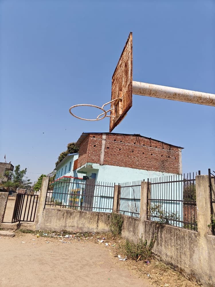 ओरमांझी का स्टेडियम खंडहर में तब्दील, बास्केटबॉल कोर्ट का रिंग उल्टा, गैलरी टूटी, चारों ओर जंगल