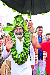 प्रतिनिधि (हजारीबाग). मुख्यमंत्री हेमंत सोरेन ने कहा कि हमारी महागठबंधन की सरकार ने आधी आबादी को अपने पैरों पर खड़ा करने का संकल्प लिया है. इसलिए ‘झारखंड मुख्यमंत्री मंईयां सम्मान योजना’ के तहत 21 से 49 वर्ष के महिलाओं को हर माह एक-एक हजार रुपये दिये जा रहे हैं. मुख्यमंत्री शनिवार को हजारीबाग के नगवां हवाई अड्डा में आयोजित प्रमंडलस्तरीय ‘झारखंड मुख्यमंत्री मंईयां सम्मान योजना’ समारोह को संबोधित कर रहे थे. मुख्यमंत्री ने मंईयां योजना के तहत उत्तरी छोटानागपुर प्रमंडल के सात जिलों के निबंधित लाभुकों के लिए एक अरब 39 करोड़ 40 लाख 82 हजार रुपये का डिजिटल पेमेंट किया.