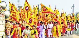 रांची. श्री श्याम ध्वजा पदयात्रा समिति के तत्वावधान में रविवार को नेवरी विकास से खाटू श्याम मंदिर, हरमू रोड तक भव्य पदयात्रा निकाली गयी. माता रानी की पूजा-अर्चना के बाद यात्रा की शुरुआत हुई. श्रद्धालु हाथों में ध्वजा लेकर जयकारा लगाते हुए आगे बढ़े, जबकि फूलों से सजे रथ में भगवान श्री श्याम विराजमान थे. भक्त पारंपरिक वेशभूषा में भजन गाते और ध्वजा लहराते हुए चले. ढाक की धुन पर श्रद्धालु नृत्य कर रहे थे. भजन गायकों ने डोरी खींच के राखीजो यह तो है बाबा को निशान…, श्याम धनी को आयो रे बुलावो…जैसे भजनों का सुमधुर गायन किया. श्याम मंदिर पहुंचने पर भक्तों का स्वागत महामंत्री विश्वनाथ नारसरिया सहित अन्य ने किया. भक्तों ने निशान अर्पित कर सबकी मंगलकामना की.