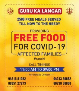 पैराडाइज सोसायटी की ओर से गुरु का लंगर (Guru Ka Langar) कार्यक्रम चलाया जा रहा है. इसके तहत ऐसे घरों तक मुफ्त खाना पहुंचाया जा रहा है. संस्था की ओर से बताया गया कि महामारी के इस भयावह दौर में कुछ ऐसे परिवार भी हैं जहां अधिकतर सदस्य कोरोना पॉजिटिव हो गये हैं और उनके घर में खाना बनाने वाला भी कोई नहीं है. वेसे परिवारों को गुरु का लंगर कार्यक्रम के माध्यम से भोजन पहुंचाया जा रहा है.