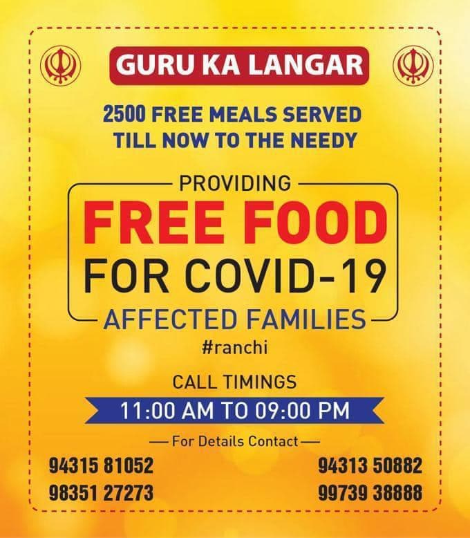 संस्था ने इसके तहत रांची और जमशेदपुर के लिए हेल्पलाइन नंबर जारी किया है. इन नंबरों पर फोन कर कोई भी संक्रमित परिवार का व्यक्ति अपने लिए भोजन मंगवा सकता है. रांची के लिए जारी हेल्पलाइन नंबर- 9431581052, 9835127273, 9431350882 और 9973938888 है. जमशेदपुर के लिए हेल्पलाइन नंबर- 9431300932, 9263198911, 8210607602 और 7979875730 है.