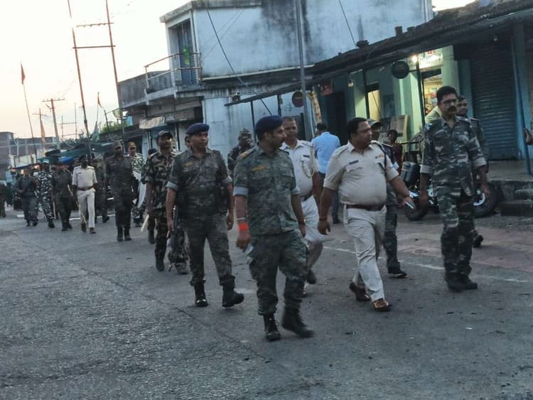 पिपरवार. दुर्गा पूजा के दौरान शांति व्यवस्था बनाये रखने को लेकर सोमवार शाम पिपरवार पुलिस द्वारा फ्लैग मार्च किया गया. टंडवा एसडीपीओ प्रभात रंजन बरवार के नेतृत्व में फ्लैग मार्च पिपरवार थाना से प्रारंभ हो कर बचरा बाजारटांड़ स्थित दुर्गा पूजा पंडाल होते बचरा जामा मस्जिद तक गया. इसमें काफी संख्या में दंगा रोधी टीम के सदस्य भी शामिल थे. पूजा पंडाल व मेला का निरीक्षण करने के बाद एसडीपीओ ने कहा कि चतरा जिला पुलिस द्वारा शांति पूर्वक पूजा संपन्न कराने को लेकर बड़ी संख्या में सुरक्षा बलों को प्रतिनियुक्त किया गया है. ये सुरक्षा बल पालियां बदल-बदल कर मेला की सुरक्षा में 24 घंटे तैनात रहेंगे. मौके पर सर्किल इंस्पेक्टर उत्तम तिवारी, थाना प्रभारी अभय कुमार सहित काफी संख्या में सशस्त्र बल के जवान शामिल थे.