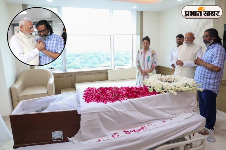Shibu Soren: दिशोम गुरु शिबू सोरेन ने आज दुनिया को अलविदा कह दिया. प्रधानमंत्री नरेंद्र मोदी शिबू सोरेन के अंतिम दर्शन करने दिल्ली के सर गंगाराम अस्पताल पहुंचे. यहां उन्होंने शिबू सोरेन को श्रद्धांजलि अर्पित कर परिवार को ढांढस बंधाया. इस दौरान पिता के निधन से दुखी सीएम हेमंत सोरेन को प्रधानमंत्री नरेंद्र मोदी हिम्मत देते नजर आये.