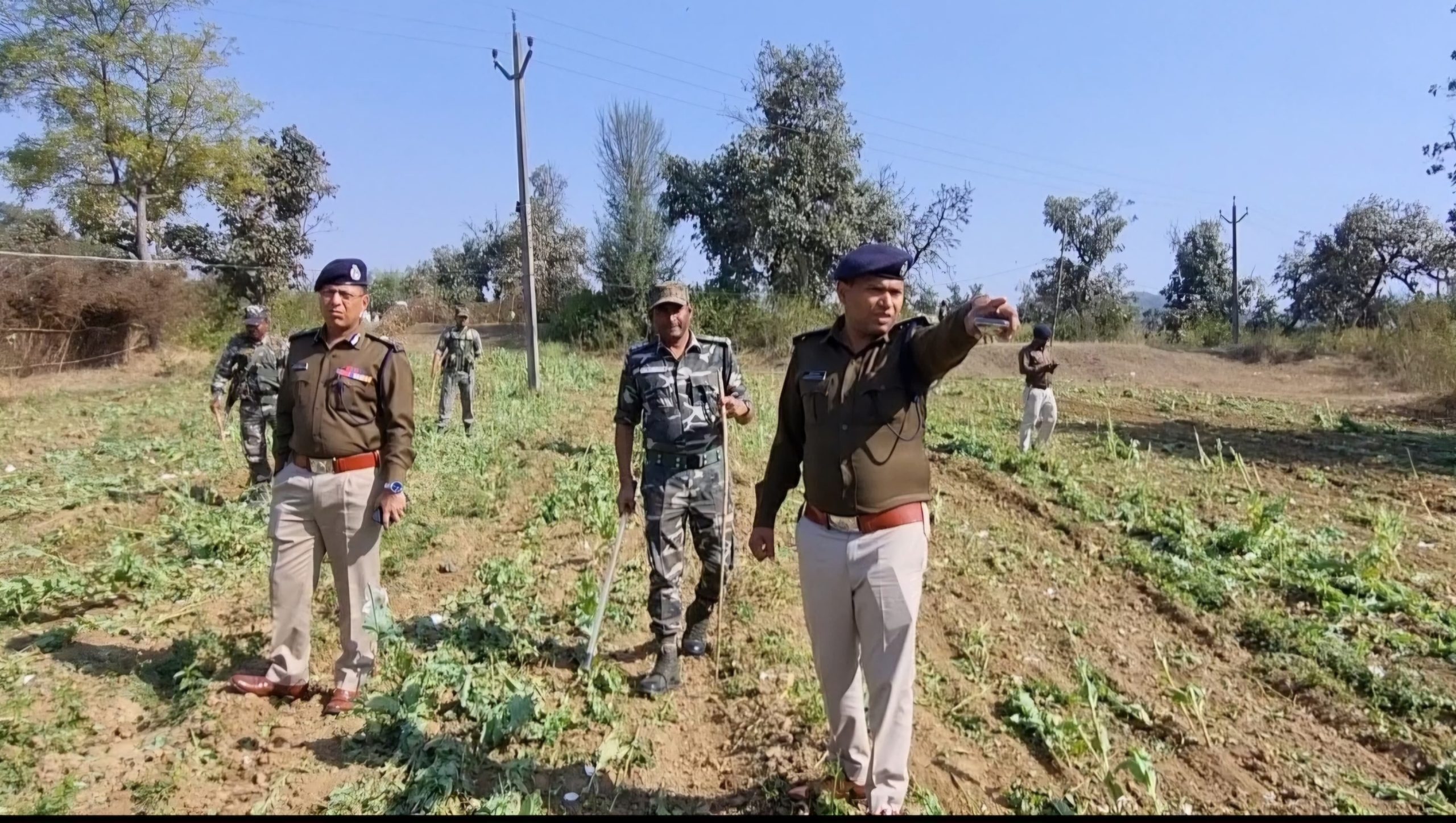 अफीम की खेती का जायजा लेने के लिए गुरुवार को आइजी अखिलेश झा तमाड़ के सुदूरवर्ती गांव पहुंचे. तमाड़ थाना क्षेत्र के परासी के निकट के जंगली क्षेत्रों में ड्रोन, ट्रैक्टर और सैकड़ों जवानों को लेकर अफीम लगे खेतों का मुआयना किया. श्री झा ने पुलिस प्रशासन को हर हाल में अफीम की अवैध खेती को नष्ट करने का निर्देश दिया. उन्होंने पुलिस बलों के अलावे मजदूर लगाकर अफीम की खेती को नष्ट करने को कहा. क्षेत्र में लगाये गये अफीम को ड्रोन से जायजा लेकर कार्रवाई करने की बात कही. आइजी अखिलेश झा और ग्रामीण एसपी सुमित कुमार अग्रवाल ने डंडे से अफीम की फसल को नष्ट किये. उनके साथ बुंडू डीएसपी ओमप्रकाश, तमाड़ थाना प्रभारी रोशन कुमार सहित पुलिस पदाधिकारी व बल शामिल थे. आइजी ने बताया कि बुंडू अनुमंडल क्षेत्र में भारी तादाद में अफीम की फसल लगाने की सूचना मिली है. वहीं झारखंड से नशे की खेती पर लगाम लगाने को लेकर गृह सचिव, डीजीपी, डीआइजी आदि पदाधिकारी सक्रिय हैं. हालांकि जागरूकता अभियान चलाने के बाद किसान अपने खेतों में अफीम की फसलों को स्वयं नष्ट कर रहे हैं. लेकिन कुछ जंगली क्षेत्रों में अभी-भी काफी मात्रा में अफीम की अवैध खेती की गयी है. उन्होंने लोगों से स्वयं अफीम की खेती नष्ट करने की अपील की है. अन्यथा पुलिस कार्रवाई करेगी तो उसका खर्च भी किसानों से ही वसूलने की बात कही.