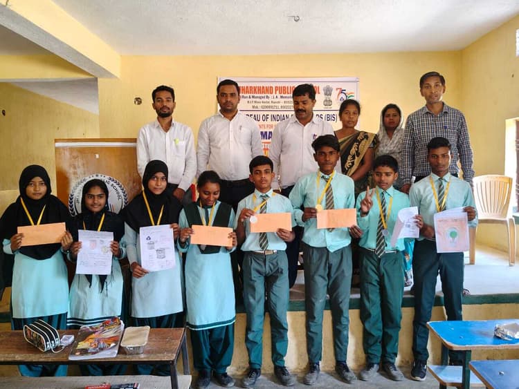 मेसरा. झारखंड पब्लिक स्कूल, केदल में मंगलवार को ब्यूरो ऑफ इंडियन स्टैंडर्ड (बीआइएस) जमशेदपुर शाखा की ओर से पोस्टर बनाओ प्रतियोगिता का आयोजन किया गया. इसमें विद्यालय के 40 बच्चों ने हिस्सा लिया. कार्यक्रम में बीआइएस के अंतर्गत आनेवाले उपभोक्ता वस्तुओं का पोस्टर बनाया गया. इसमें प्रथम स्थान पानेवाले मुनसफ व अरसलान को एक हजार नकद, द्वितीय स्थान पानेवाले अलतमस व सैफ को 750, तृतीय स्थान पानेवाली प्रीति व सना को 500 और चौथे स्थान पानेवाली सादिया व सना को 250 रुपया नकद पुरस्कार के अलावा प्रशस्ति पत्र दिया गया. मौके पर प्रधानाध्यापक मो फिरोज, उप प्रधानाध्यापक तारिक अनवर, रेशमा खातून, अनवर आलम, जेनेट समद, रंजीत कुमार सदफ सानिया व अन्य मौजूद थे.