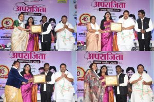 प्रभात खबर की ओर से विभिन्न क्षेत्रों में नाम रोशन करनेवाली राज्य की 21 महिलाओं को अपराजिता सम्मान प्रदान किया गया. सीएमपीडीआइ के मयूरी प्रेक्षागृह में गुरुवार को आयोजित समारोह में मंत्री बादल पत्रलेख व बसंत सोरेन के साथ राज्यसभा सांसद महुआ माजी ने महिलाओं को सम्मानित किया. अतिथियों ने दीप जलाकर कार्यक्रम का उद्घाटन किया. सम्मानित महिलाओं ने साइंस एंड टेक्नोलॉजी, व्यवसाय, उद्यमिता, फोटोग्राफी, समाजसेवा, महिला उत्थान,अधिवक्ता, प्रबंधन और शिक्षा के क्षेत्र में उल्लेखनीय योगदान दिया है. प्रभात खबर के मंच से सम्मान प्राप्त कर महिलाएं खुशी से लबरेज दिखीं और प्रभात खबर के प्रति आभार भी व्यक्त किया.