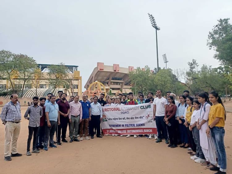 रांची (वरीय संवाददाता). स्वीप के तहत मंगलवार को मतदाताओं को जागरूक करने के उद्देश्य से अनुमंडल पदाधिकारी (सदर) उत्कर्ष कुमार के नेतृत्व में प्रभातफेरी निकाली गयी. संत जेवियर कॉलेज और मारवाड़ी कॉलेज के चुनावी साक्षरता क्लब के छात्र-छात्राओं ने मोरहाबादी मैदान में मतदाताओं को मतदान करने के लिए जागरूक एवं प्रेरित किया. मौके पर पुलिस अधीक्षक (ग्रामीण) सुमित कुमार अग्रवाल, कार्यपालक दंडाधिकारी जफर हसनाथ, संत जेवियर कॉलेज प्राचार्य और संबंधित पदाधिकारी उपस्थित थे.