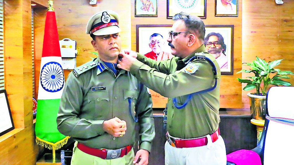 रांची. डीजीपी अनुराग गुप्ता ने गुरुवार को अपने कार्यालय कक्ष में 2012 बैच के प्रोन्नत आइपीएस अधिकारियों को बैज लगाकर सम्मानित किया. इनमें जमशेदपुर के एसएसपी किशोर कौशल के अलावा आनंद प्रकाश व अंजनी कुमार झा शामिल हैं. उल्लेखनीय है कि उक्त अधिकारियों को भारतीय पुलिस सेवा के सेलेक्शन ग्रेड में प्रोन्नति दी गयी है. गृह विभाग ने 32 जनवरी को इसकी अधिसूचना जारी की थी. इस दौरान आइजी राजकुमार लकड़ा, मनोज कौशिक, ए विजयालक्ष्मी, डीआइजी इंद्रजीत माहथा, डीआइजी नौशाद आलम, अश्विनी सिन्हा, जैप-10 कमांडेंट पीयूष पांडेय, एसपी मनीष टोप्पो, अमीत रेणु सहित अन्य पुलिस पदाधिकारी उपस्थित थे.