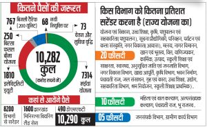 बजट से अतिरिक्त ली गयी स्कीम में सबसे अधिक खर्च झारखंड मुख्यमंत्री मंईयां सम्मान योजना पर होना है. इसके लिए राज्य सरकार को चालू वित्तीय वर्ष के अंत तक “7314 करोड़ चाहिए. इसके अतिरिक्त सरकार को इलेक्ट्रिसिटी ड्यूटी में छूट के लिए करीब “1810 करोड़, बिरसा फसल बीमा योजना के लिए “250 करोड़ और बिजली के टैरिफ सब्सिडी के लिए “767 करोड़ चाहिए. वित्त विभाग का मानना है कि चालू वित्तीय वर्ष के अंत तक कुछ नियुक्तियां होंगी या हुई हैं, उसके वेतन व सुविधा मद के लिए “68 करोड़ चाहिए. इसके अतिरिक्त करीब “73 करोड़ राज्य सरकार द्वारा सरकारी कर्मियों की सुविधा में की गयी विभिन्न प्रकार वृद्धि के लिए चाहिए.विभागों से करीब 8,000 करोड़ आने का अनुमान