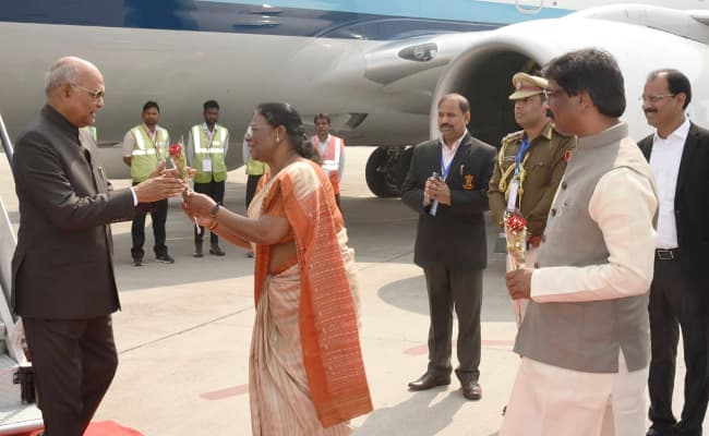 रांची : राष्ट्रपति रामनाथ कोविंद शुक्रवार को दो दिन की यात्रा पर झारखंड की राजधानी रांची पहुंचे. सेंट्रल यूनिवर्सिटी ऑफ झारखंड के दीक्षांत समारोह में भाग लेने के लिए दोपहर में महामहिम रांची स्थित बिरसा मुंडा एयरपोर्ट पर उतरे. प्रदेश की राज्यपाल द्रौपदी मुर्मू, मुख्यमंत्री हेमंत सोरेन और रांची की मेयर आशा लकड़ा के अलावा झारखंड के आला अधिकारियों ने एयरपोर्ट पर राष्ट्रपति का स्वागत किया.