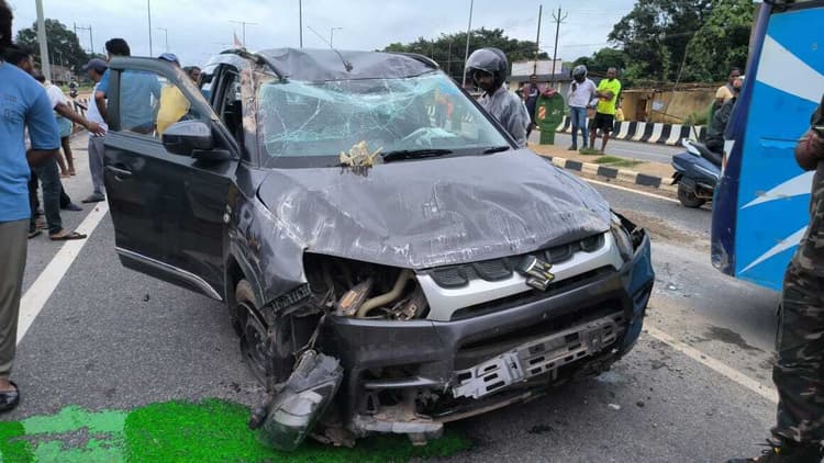 केसीबी कॉलेज के प्राचार्य डॉ विनोद कुमार सिंह की कार बुधवार सुबह पलट गयी. हादसा रांची-गुमला मुख्य मार्ग पर जरिया मोड़ के पास हुआ. डॉ सिंह सुबह 10 बजे रांची से कॉलेज आ रहे थे. सामने से तेज रफ्तार में आ रही बाइक सवार सड़क पर रखे मिट्टी के ढेर से टकराकर असंतुलित हो गयी. टक्कर से बचाने के लिए कार चालक ने अचानक ब्रेक मारा, जिससे अनियंत्रित होकर कार पलट गयी. डॉ सिंह और उनके चालक को मामूली चोटें आयी. बाइक सवार युवक और युवती गंभीर रूप से घायल हो गये. युवक की पहचान गुमला जिले के भरनो थाना क्षेत्र के सरगांव निवासी अलताब चौधरी (29) के रूप में हुई. उसके दाहिनी जांघ की हड्डी टूट गयी है. पीछे बैठी पूजा कुमारी (17) को सिर, हाथ और शरीर में गंभीर चोटें आयी. ग्रामीणों ने दोनों घायलों को सामुदायिक स्वास्थ्य केंद्र पहुंचाया. प्राथमिक उपचार के बाद चिकित्सक उन्हें रिम्स रांची रेफर कर दिया. घायल अलताब चौधरी ने बताया कि वह नगड़ी कुछ सामान लेने जा रहे थे. रास्ते में पूजा कुमारी मिलीं. उन्होंने लिफ्ट मांगा, तो उन्हें साथ ले जा रहे थे. डॉ सिंह ने कहा कि बुलेट की रफ्तार तेज थी. मिट्टी के ढेर से बाइक असंतुलित हुई. ड्राइवर को हार्ड ब्रेक लगाना पड़ा और कार पलट गयी.बेड़ो 1 दुघर्टनाग्रस्त कार.