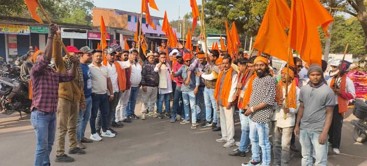 प्रतिनिधि, खलारी. विश्व हिंदू परिषद सह बजरंग दल के संयुक्त तत्वावधान में शनिवार को शौर्य दिवस के अवसर पर खलारी पहाड़ी मंदिर से सैकड़ों की संख्या में बजरंग दल कार्यकर्ताओं ने नगर भ्रमण करते हुए भव्य बाइक शोभायात्रा निकाली. इस दौरान पूरा क्षेत्र जय श्रीराम के नारों और देशभक्ति गीतों से गूंज उठा. शोभायात्रा में शामिल सभी बजरंगियों को मंदिर परिसर में क्षेत्र के गणमान्य लोगों ने भगवा अंगवस्त्र पहनाकर सम्मानित किया. कारसेवकों को सम्मान स्वरूप प्रतीक चिह्न भेंट किये गये. साथ ही सभी बजरंगियों को दंड देकर भी सम्मानित किया गया. इस अवसर पर बजरंग दल रांची जिला संयोजक बिनोद विश्वकर्मा ने शौर्य दिवस के महत्व पर प्रकाश डाला. कहा कि यह दिन हमारे पूर्वजों के बलिदान और शौर्य की याद दिलाता है. उन्होंने युवाओं से देश और धर्म की रक्षा के लिए सदैव तत्पर रहने का आह्वान किया. यात्रा के दौरान बजरंग दल के कार्यकर्ताओं ने सामूहिक रूप से जय श्रीराम के नारे लगाये और देशभक्ति गीतों से वातावरण को राष्ट्रभक्ति से ओतप्रोत कर दिया. शोभायात्रा के मानकी पहुंचने पर दुर्गावाहिनी की सदस्यों ने सभी बजरंगियों पर फूलों की वर्षा कर भव्य स्वागत किया. कार्यक्रम में स्थानीय लोगों ने भी बढ़-चढ़कर हिस्सा लिया और आयोजन की सराहना की. आयोजन न केवल धार्मिक उत्साह से भरा रहा, बल्कि इसने क्षेत्र में एकता और देशभक्ति की भावना को भी मजबूत किया. कार्यक्रम की व्यवस्था प्रखंड संयोजक अमित कुमार ने संभाली, जबकि कार्यक्रम का धन्यवाद ज्ञापन कारसेवक फुलेश्वर महतो ने किया. शोभायात्रा बचरा मुख्य मार्गों का भ्रमण करते हुए बचरा शिव मंदिर के पास पहुंचकर विधिवत रूप से संपन्न हुई.