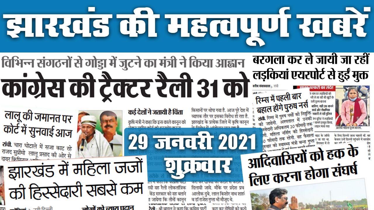 Jharkhand News, Corona Vaccination, Weather, Crime Updates, Lalu Yadav Health Update: लालू प्रसाद को निमोनिया है कोरोना नहीं, जांच में हुआ खुलासा. मिलने आए उनके परिवार वाले. तेजस्वी ने कहा, पिता की तबीयत ठीक नहीं. अब शिक्षक बन सकेंगे अफसर. राज्य के 21 जिलों में कोरोना के एक्टिव केस 50 से भी हुए कम. 2 दिन में पारा गिरा 5.2 डिग्री. कल से राहत मिलने की उम्मीद. रघुवर दास ने लगाया आरोप कहा- झारखंड के 4 राज्यों का चुनावी खर्च निकालने में जुटी है कांग्रेस…