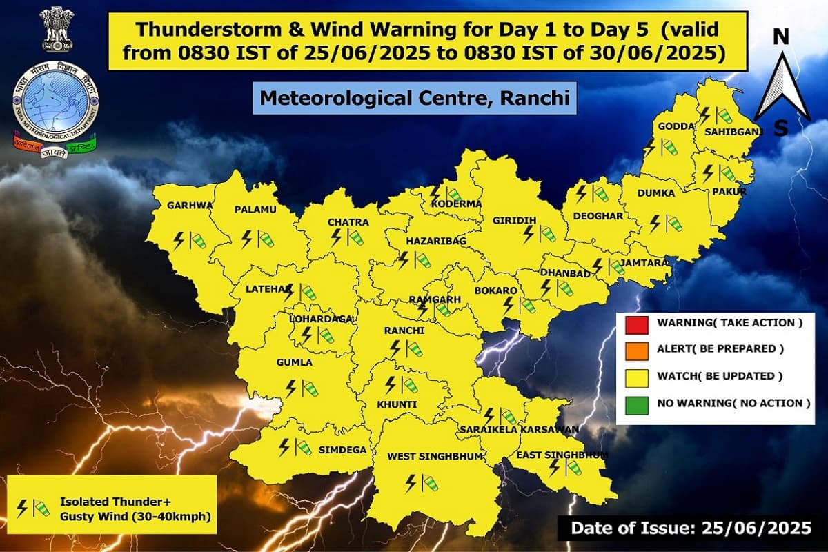 इसे भी पढ़ें सावधान! झारखंड में आज भारी से बहुत भारी बारिश की चेतावनी, 27, 28 और 29 जून को भी भारी बारिश