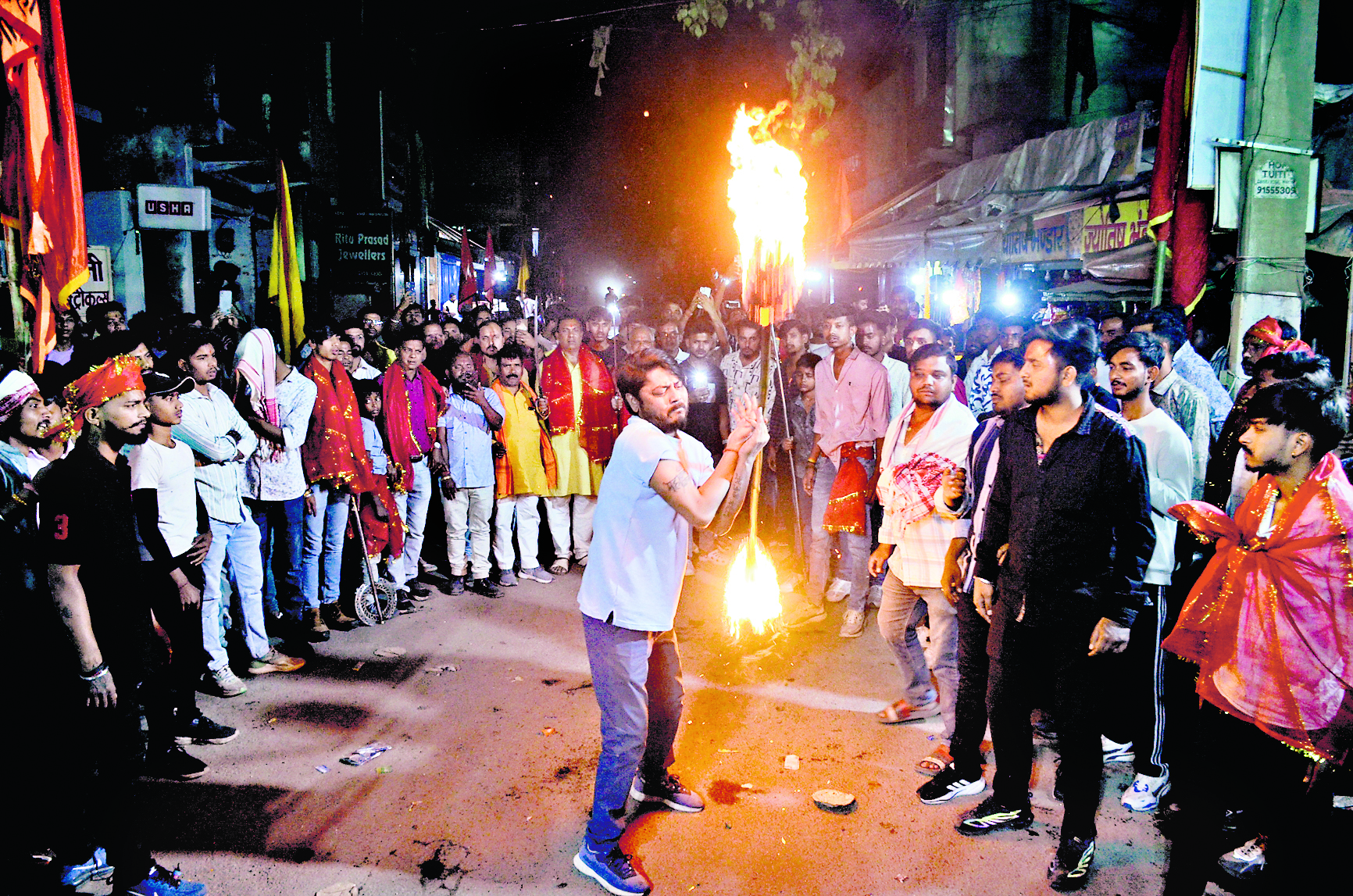 वरीय संवाददाता, रांची. श्री महावीर मंडल केंद्रीय समिति की ओर से अंतिम मंगलवारी के अवसर पर भव्य जुलूस निकाला गया. रामभक्तों ने ताशा पार्टी व ढोल-नगाड़े के बीच एक से बढ़कर एक करतब दिखाये. देर रात तक करतब दिखाने का यह सिलसिला जारी था. मौके पर अध्यक्ष जयसिंह यादव, मंत्री सुभाष साहू, पवन गुप्ता, राहुल सिन्हा चंकी, उदय रविदास, बलिराम प्रसाद, संतोष गुप्ता, प्रमोद सारस्वत, सुनील वर्मा पप्पू, प्रेम सिंह, बिंदुल वर्मा, राकेश सिंह सहित काफी संख्या में मंडल के कार्यकर्ता उपस्थित थे. माला पहनाकर व अंगवस्त्र देकर किया सम्मानित : श्री महावीर मंडल द्वारा इस दौरान विभिन्न क्षेत्रों से आनेवाले अखाड़ेधारियों को माला और अंगवस्त्र पहनाकर सम्मानित किया गया. इस दौरान प्रसाद भी बांटा गया. भव्य शोभायात्रा निकली : श्री चैती दुर्गा पूजा महासमिति द्वारा अंतिम मंगलवारी पर भव्य शोभायात्रा निकाली गयी. यह शोभायात्रा अपर बाजार के विभिन्न सड़कों से होती हुई महावीर चौक पहुंची. इस दौरान 101 किलो शुद्ध घी से बने लड्डू के भोग का वितरण किया गया. मौके पर महासमिति के मुख्य संरक्षक किशोर साहू, रमेश सिंह, अध्यक्ष शंकर दुबे, गोपाल पारीक, संजय सिंह, नमन भारतीय, सौरभ राय, रोहित सिंह सहित काफी संख्या में रामभक्त मौजूद थे. हिनू में कला का प्रदर्शन किया रामभक्तों ने : श्री महावीर मंडल हिनू चौक द्वारा अंतिम मंगलवारी जुलूस गाजे-बाजे के साथ निकाली गयी. शहर के विभिन्न मार्गों से होते हुए यह जुलूस महावीर मंदिर हिनू पहुंचा. यहां रामभक्तों ने अस्त्र-शस्त्र का चालन किया. ढोल-नगाड़ा के साथ रामभक्तों ने जय श्री राम के नारे लगाये. मौके पर मंडल के अध्यक्ष गोपाल थापा, गुड्डू मिश्रा, अशोक श्रीवास्तव, सुरेश यादव, उदय झा, कृष्णा यादव सहित काफी संख्या में लोग उपस्थित थे. डोरंडा में धूमधाम से निकली शोभायात्रा : श्री महावीर मंडल डोरंडा के अध्यक्ष संजय पोद्दार व मंत्री पप्पू वर्मा के नेतृत्व में तीसरी मंगलवारी शोभायात्रा धूमधाम के साथ निकाली गयी. तीन जगहों से निकली यह शोभायात्रा डोरंडा क्षेत्र के विभिन्न मोहल्ले से होते हुए तुलसी चौक पहुंची. यहां से निकलकर शोभायात्रा महावीर मंदिर पहुंची. यहां पूजा-अर्चना करने के बाद सभी रामभक्त अपने घर लौट गये.