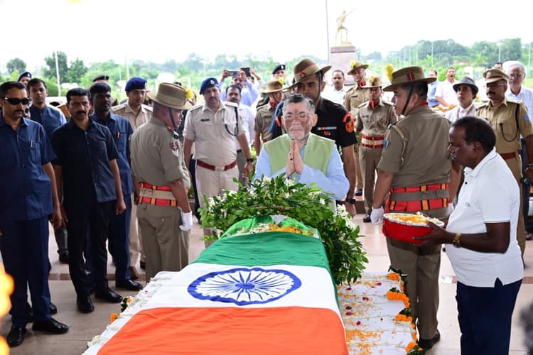 झारखंड के शिक्षा मंत्री और झामुमो के वरिष्ठ नेता रामदास सोरेन को शनिवार को विधानसभा परिसर में श्रद्धांजलि दी गयी. उनका पार्थिव शरीर सुबह 9:50 बजे रांची एयरपोर्ट से विधानसभा (साउथ पोर्टिको) पहुंचा. इस मौके पर सशस्त्र बलों ने उनके पार्थिव शरीर पर राष्ट्रीय ध्वज तिरंगा ओढ़ाकर सम्मान दिया. गार्ड ऑफ ऑनर भी दिया गया. वहीं, दो मिनट का मौन धारण किया गया और वाद्य यंत्रों को बजाकर दिवंगत शरीर को अंतिम सलामी दी गयी. सबसे पहले सुबह 10:10 बजे राज्यपाल संतोष कुमार गंगवार ने श्रद्धांजलि दी. इसके बाद एक-एक अन्य लोगों ने श्रद्धांजलि दी.इन्होंने दी श्रद्धांजलि