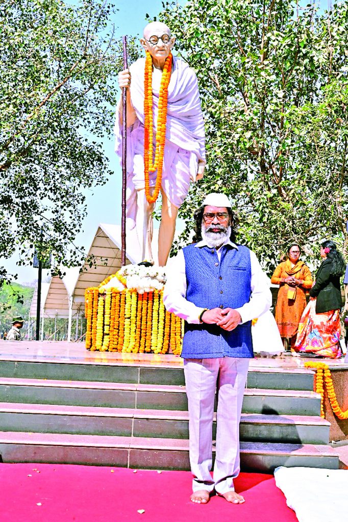 मुख्यमंत्री हेमंत सोरेन ने राष्ट्रपिता महात्मा गांधी की पुण्यतिथि पर मोरहाबादी स्थित बापू वाटिका जाकर बापू की प्रतिमा पर माल्यार्पण कर श्रद्धांजलि दी.