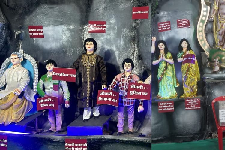मां दुर्गा की प्रतिमा के समकक्ष लालू यादव समेत इन नेताओं की लगायी गयी है प्रतिमा
