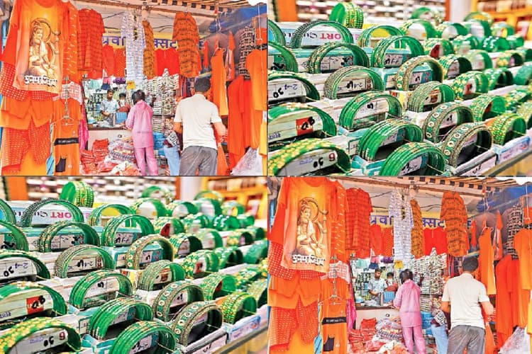 गेरुआ वस्त्रों से पटा बाजार