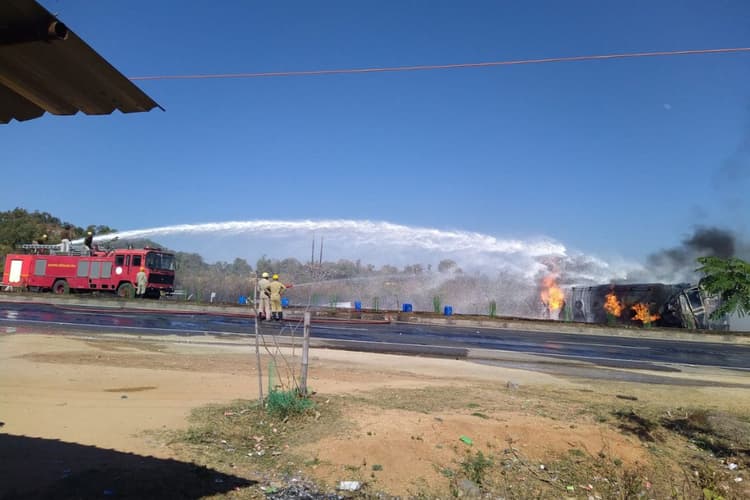देखते ही देखते टैंकर में आग लग गयी