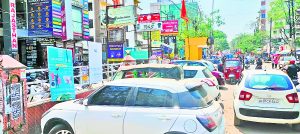 Ranchi News : शहर के बड़े प्रतिष्ठानों का हाल : रोजाना लाखों का कारोबार, पर पार्किंग के लिए नहीं है जगह
