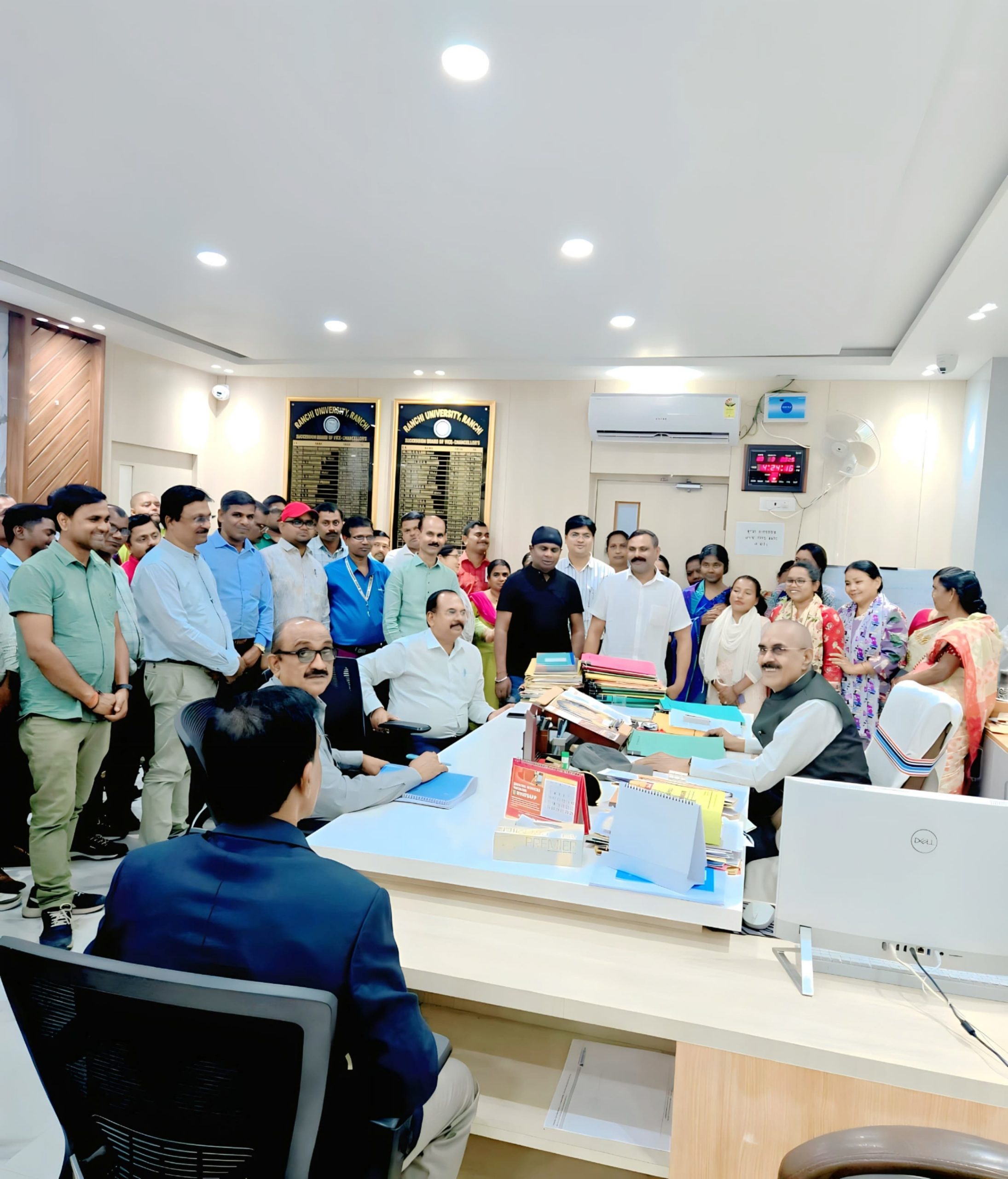 रांची विवि कर्मचारी महासंघ के बैनर तले बुधवार को मुख्यालय के सभी कर्मचारियों ने कुलपति डॉ अजीत कुमार सिन्हा का घेराव किया. झारखंड विवि कर्मचारी महासंघ के अध्यक्ष नवीन चंचल व रांची विवि कर्मचारी संघ के महामंत्री अर्जुन राम ने कहा कि राजभवन के निर्देश के बाद भी उच्च व तकनीकी शिक्षा विभाग उपनिदेशक डॉ अनमोल लाल की सेवा विवि को वापस नहीं कर रहा है. विभाग द्वारा डॉ लाल को विरमित नहीं किया जा रहा है. कर्मचारियों ने कुलपति से डॉ लाल के खिलाफ कार्रवाई की मांग की. नेताओं ने कहा कि उच्च शिक्षा निदेशक ने भी विभागीय मंत्री को धोखे में रख कर डॉ लाल का अवधि विस्तार ले लिया. जबकि, विभागीय सचिव द्वारा जारी पत्र में कहा गया है कि प्रतिनियुक्त अधिकारियों की सेवा तीन वर्ष से अधिक नहीं होगी. घेराव कार्यक्रम में निर्मल उरांव, पप्पू बांडो, संदीप मिंज, हेमंत भगत, सुरेश महली कर्मवीर उरांव, अजीत बैठा, मुकेश वर्मा, राणा कुमार, बीके त्रिपाठी, सुधीर सिंह, वीके टंडन, संतोष मंडल, शंकर थापा, मुन्ना उरांव, कृष्णा गोप, चंदन मिश्रा आदि शामिल थे.डिस्क्लेमर: यह प्रभात खबर समाचार पत्र की ऑटोमेटेड न्यूज फीड है. इसे प्रभात खबर डॉट कॉम की टीम ने संपादित नहीं किया है