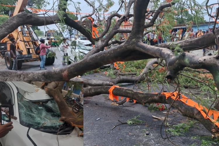 वाहनों पर पेड़ गिरते ही मची अफरा-तफरी