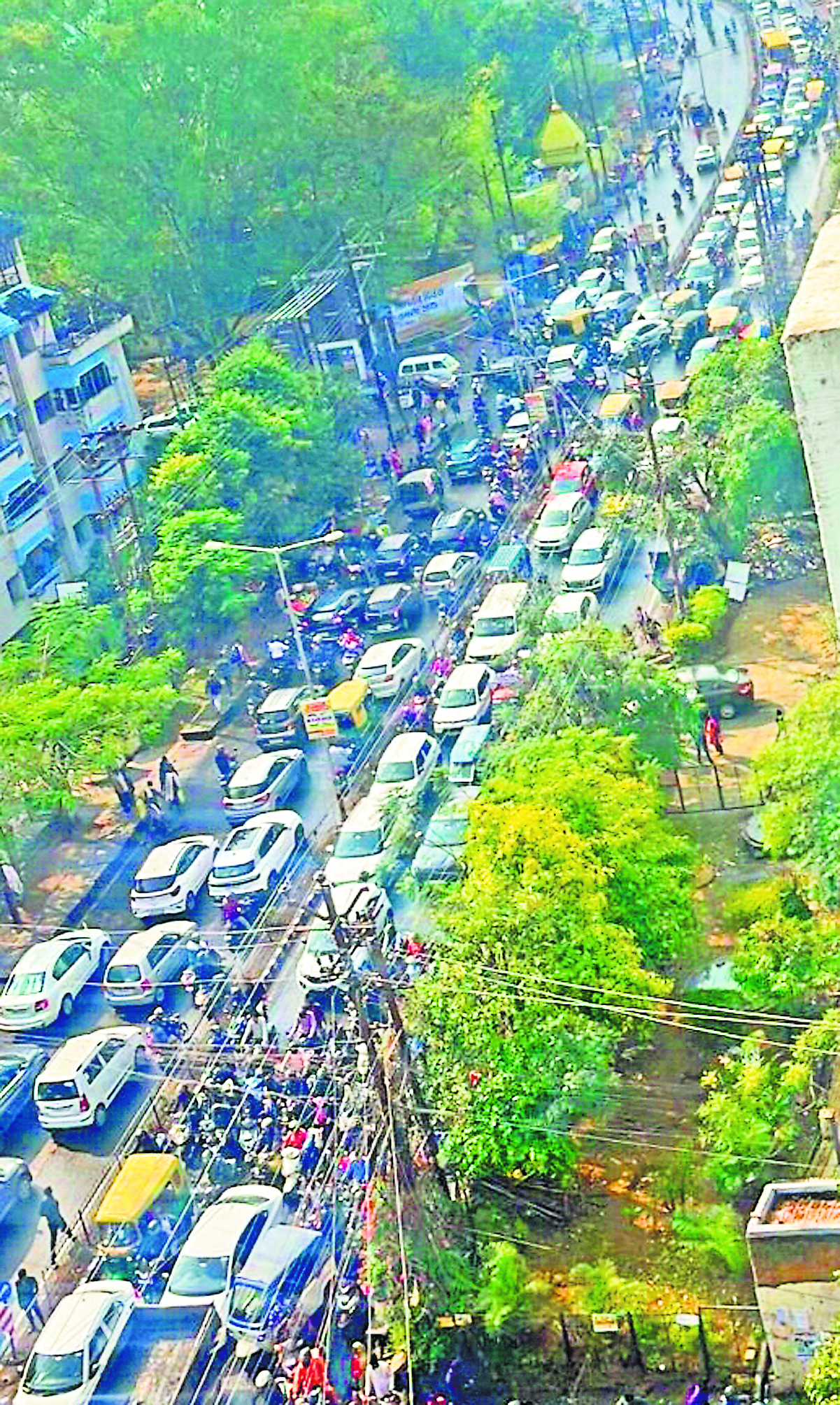 संत फ्रांसिस स्कूल रोड में दो घंटे तक फंसी रहीं गाड़ियां