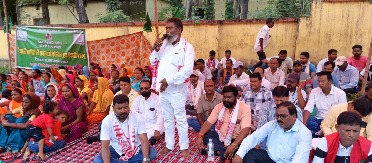 रैयत विस्थापित मोर्चा के बैनर तले केडीएच परियोजना कार्यालय के समक्ष एक दिवसीय धरना दिया गया.