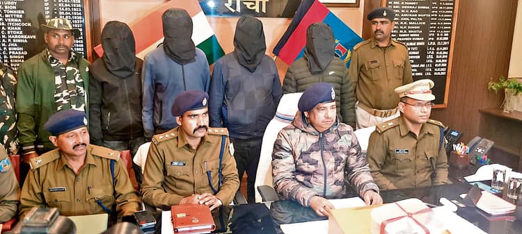 रांची. नामकुम पुलिस ने जमीन कारोबारी मधुसूदन राय उर्फ मधु राय हत्याकांड का खुलासा करते हुए चार आरोपियों को गिरफ्तार किया है. गिरफ्तार आरोपियों में पंडरा निवासी मानवेल खलखो, टाटीसिलवे निवासी अशोक सिंह, नामकुम निवासी राज किशोर राय और दीपक कुमार राय शामिल हैं. इनके पास से एक देसी कट्टा, सात गोली, चार मोबाइल, घटना में प्रयुक्त बाइक बरामद किया गया है. जबकि मृतक मधुसूदन राय का संबंधी मास्टरमाइंड उमेश राय अब भी पुलिस की गिरफ्त से बाहर है. उस पर हत्या, डकैती सहित एक दर्जन से अधिक मामले राजधानी के विभिन्न थानाें में दर्ज हैं. यह जानकारी डीआइजी सह एसएसपी चंदन कुमार सिन्हा ने गुरुवार को प्रेस कांफ्रेंस में दी. पांच दिसंबर 2024 को मधुसूदन राय की नामकुम थाना क्षेत्र के रिंग रोड में गोली मार कर हत्या कर दी गयी थी. इस दौरान मुख्यालय डीएसपी-वन अमर कुमार पांडेय तथा नामकुम थाना प्रभारी ब्रह्मदेव प्रसाद मौजूद थे. इस हत्याकांड का खुलासा करने के लिए एसआइटी का गठन किया गया था. एसआइटी को आरोपियों के छिपे होने की सूचना मिली थी. इसके बाद एसआइटी ने बड़ाकवाली से करीब एक किलोमीटर उत्तर दिशा में जंगल से उक्त हत्या के चारों आरोपियों को गिरफ्तार कर लिया. इस दौरान एक आरोपी भागने में सफल रहा. पूछताछ में आरोपियों ने बताया कि फरार आरोपी के साथ मिलकर आठ एकड़ जमीन के पुराने विवाद के कारण मधुसूदन राय की हत्या की गयी है. आरोपियों ने उमेश राय के साथ मिलकर मधुसूदन राय की हत्या की घटना को अंजाम देने की बात स्वीकार की है. आरोपियों ने बताया कि दीपक कुमार राय एवं राज किशोर राय ने मधु राय की रेकी की थी. रेकी करने के बाद इसकी सूचना अशोक सिंह व उमेश राय काे दी. बाद में उमेश राय व शूटर मानवेल ने मधु राय की हत्या कर दी. हत्या की प्लानिंग सितंबर 2024 से ही बनायी जा रही थी. हत्या मामले का सजायाफ्ता है उमेश राय, शूटर को दी थी दो बाइक : डीआइजी सह एसएसपी ने बताया कि उमेश राय हत्या मामले का सजायाफ्ता है. वह डोरंडा के घाघरा में दो हत्या, अरगोड़ा थाना क्षेत्र में काशीनाथ नायक पर गोली चलाने, डकैती सहित एक दर्जन से अधिक मामलों का आरोपी है. शूटर मानवेल खलखो से जेल में ही उसकी मुलाकात हुई थी. मानवेल को हत्या करने के एवज में दो बाइक दी गयी थी. दोनों बाइकों के लिए 50 हजार रुपये फाइनेंस किया गया था. साथ ही किस्त भरने और मधु राय वाली जमीन पर कब्जा हो जाने के बाद उसमें भी हिस्सा देने की बात कही गयी थी. उमेश राय एवं गिरफ्तार दीपक राय, राज किशोर राय उर्फ गुड्डू राय व अन्य आरोपियों ने मृतक मधुसूदन पर वर्ष 2008 में भी फायरिंग की थी. लेकिन गोली मधुसूदन को न लग कर उसकी पत्नी को लग गयी, जिससे उसकी पत्नी की मौत हो गयी थी. वर्ष 2016 में भी मधुसूदन पर फायरिंग की गयी थी. इस दौरान भी उनकी जान 