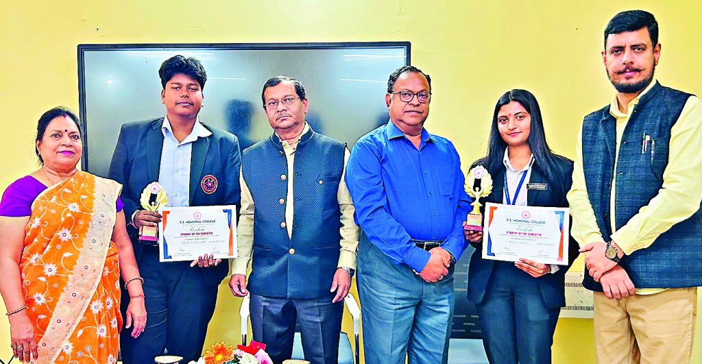 रांची. रांची विश्वविद्यालय के एसएस मेमोरियल कॉलेज के बीबीए विभाग की ओर से ‘स्टूडेंट ऑफ़ दी सेमेस्टर अवार्ड’ सीजन-3 का आयोजन किया गया. यह कार्यक्रम बीबीए विभाग के सत्र 2022-2025 (सेमेस्टर-03) के छात्रों के लिए आयोजित किया गया. इस वर्ष रेशु सिंह और ऋषि साहा को ‘स्टूडेंट ऑफ़ द सेमेस्टर’ का खिताब प्रदान किया गया. इस अवसर पर रांची विवि के डीन स्टूडेंट्स वेलफेयर प्रो डॉ सुदेश कुमार साहू उपस्थित रहे. उन्होंने छात्रों को बधाई देते हुए कहा कि इस प्रकार के आयोजनों से छात्रों में प्रतिस्पर्धा की भावना बढ़ती है. कॉलेज के प्राचार्य प्रो डॉ बीपी वर्मा ने कहा कि यह कार्यक्रम छात्रों के शैक्षणिक और व्यावसायिक कौशल को बढ़ाने में सहायक है. बीबीए विभाग के सहायक प्राध्यापक डॉ तनुज खत्री ने प्रेजेंटेशन के माध्यम से ‘स्टूडेंट ऑफ़ दी सेमेस्टर’ के चयन के मानदंडों के बारे में बताया और समझाया कि इस तरह के आयोजनों से छात्रों में प्रतिस्पर्धात्मक भावना, प्रदर्शन कौशल और प्रबंधन दक्षता का विकास होता है. मौके पर डॉ अनिल कुल्लू इस कार्यक्रम में प्रो इंचार्ज डॉ रानी प्रगति प्रसाद,वोकेशनल कॉर्डिनेटर डॉ अनिल कुल्लू, विभाग के छात्र-छात्राओं में आकाश, साक्षी, दीप्ति, शुभम, मोहित, आदर्श, शिवांश, सुजल, अन्नू, ऋतिक, श्वेता कुमारी, कोमल, राजलक्ष्मी, सिमरन, राजकुमारी सहित सैकड़ों छात्र-छात्राएं उपस्थित थे.