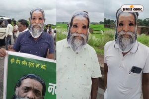 RIMS 2 विवाद: नगड़ी में किसानों का प्रदर्शन तेज! शिबू सोरेन का मास्क पहन सड़कों पर उतरे किसान