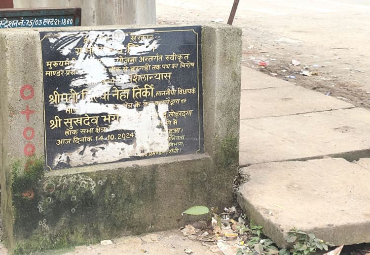 मरम्मत के अभाव में गड्ढों में तब्दील हो गयी मुड़मा-बरगड़ी सड़क के शिलान्यास के 11 महीने बाद भी काम शुरू नहीं हुआ है. करीब चार किलोमीटर लंबी इस सड़क के मरम्मतीकरण के कार्य का शिलान्यास 14 अक्तूबर 2024 को किया गया था. मरम्मतीकरण का कार्य मुख्यमंत्री ग्राम सड़क योजना से किया जाना था. शिलान्यास के 11 महीने बाद भी सड़क की मरम्मतीकरण का कार्य शुरू नहीं होने से स्थानीय ग्रामीणों में काफी नाराजगी है. ग्रामीणों का कहना है कि गड्ढों के कारण इस सड़क पर आवागमन मुश्किल भरा हो गया है. नाराज ग्रामीणों ने कुछ दिन पूर्व इस सड़क पर गड्ढों में जमा पानी में धान का बिचड़ा लगाकर भी विरोध प्रकट किया था. बताया गया कि ग्रामीण अब इस सड़क के गड्ढों को खुद से भरने और इसे चलने लायक बनाने की तैयारी में जुटे हैं.मांडर 1, सड़क निर्माण के लिए अनावरण किया गया शिलापट्ट.B