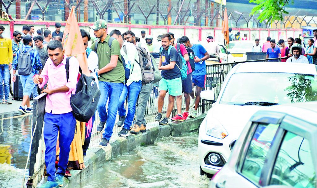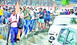 Ranchi news : एक घंटा की बारिश से सड़कों पर दो फीट तक भरा पानी