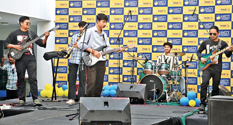 रांची. बावरा मन मेरा…गीत के साथ रॉक म्यूजिक की धुन कॉलेज कैंपस के बाहर तक सुनायी दे रही थी. स्टेज पर बैंड के गिटारिस्ट, वोकलिस्ट, ड्रमर म्यूजिकल इंस्ट्रूमेंट के साथ अपनी प्रस्तुति दे रहे थे. दूसरी ओर स्टूडेंट्स बैंड्स के परफॉरमेंस को इंज्वाॅय कर रहे थे. अवसर था एमिटी यूनिवर्सिटी और रेडियो धूम के बैटल ऑफ बैंड्स के सेमीफाइनल इवेंट का. यह कार्यक्रम बुधवार को एमिटी यूनिवर्सिटी झारखंड के कैंपस में हुआ. इसमें 12 बैंड ने परफॉर्म किया. इस दौरान निर्णायकों ने पांच बैंड को प्रस्तुति के आधार पर फाइनल के लिए चयन किया. फाइनल मुकाबला 20 मार्च को होगा. इस प्रतियोगिता में पहले स्थान के लिए 50,000 रुपये, दूसरे स्थान के लिए 30,000 रुपये और तीसरे स्थान के लिए 20,000 रुपये का पुरस्कार दिया जायेगा.