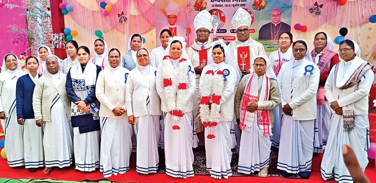 रांची. संत अन्ना धर्मसमाज की सिस्टर शशिलता लकड़ा और सिस्टर ललिता रोशनी लकड़ा के धर्मसंघीय जीवन के 25 वर्ष पूरे हो गये हैं. इस अवसर पर आर्चबिशप विसेंट आईंद ने धन्यवादी मिस्सा अर्पित की. उनका सहयोग अंबिकापुर के बिशप अनतोनिस बाड़ा ने किया. आर्चबिशप ने दोनों धर्मबहनों को उनकी सेवकाई के लिए शुभकामनाएं दीं. उन्होंने कहा कि ईश्वर ही सभी सफलताओं का स्रोत और प्रेरणा का कारण है. जब हम प्रभु के साथ जुड़े होते हैं, तो निश्चित रूप से सफलता प्राप्त होती है. इस दौरान पुस्तक का विमोचन भी किया गया. बिशप अंतोनिस बाड़ा ने भी दोनों धर्मबहनों को शुभकामनाएं दीं. मिस्सा के बाद सांस्कृतिक कार्यक्रम भी हुआ. इस अवसर पर फादर स्टालिन सेराफिन, फादर अलेक्स, फादर मनोज कुल्लू, फादर फिल्मोन लकड़ा, फादर अल्बर्ट लकड़ा, फादर असीम मिंज आदि उपस्थित थे.