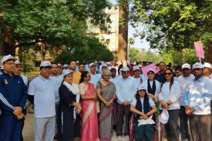 रांची: सरदार वल्लभभाई पटेल की जयंती के शुभ अवसर पर रांची जिले में रन फॉर यूनिटी का आयोजन किया गया. दिव्यांगजनों द्वारा रन फॉर यूनिटी में भाग लिया गया. कार्यक्रम के आयोजन से पूर्व दिव्यांगजन सशक्तीकरण विभाग के सचिव राजेश अग्रवाल, महिला एवं बाल विकास विभाग के सचिव केएन झा, डीसी राहुल कुमार सिन्हा द्वारा सरदार वल्लभभाई पटेल के योगदान एवं उनकी जीवनी पर प्रकाश डाला गया. कार्यक्रम का आयोजन Composite Regional Centre (CRC) नामकुम के सहयोग से किया गया. कार्यक्रम में दिव्यांगजनों द्वारा उत्साहपूर्वक भाग लिया गया. प्रतिभागियों द्वारा विभिन्न प्रकार के स्लोगन एवं नारे के उद्घोष के साथ निर्धारित मार्ग पर चलते हुए समापन स्थल तक पक्तिबद्ध होकर पहुंचे.