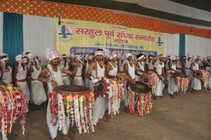 दीक्षांत मंडप मोरहाबादी में सरना नवयुवक संघ द्वारा आयोजित सरहुल पूर्व संध्या समारोह में सोमवार को 35 समूहों/एकल गायकों ने अपने नृत्य और गीत का प्रदर्शन किया. समारोह स्थल लाल पाड़ की साड़ी पहनी युवतियों व सफेद धोती-गंजी में मांदर, ढाक व बांसुरी के साथ मौजूद युवाओं से गुलजार था. सभी के चेहरे पर मुस्कान थी और अपने नृत्य व गीतों के प्रदर्शन की उत्सुकता भी. पहली प्रस्तुति दीपशिखा आदिवासी बालिका पीजी छात्रावास की छात्राओं ने कुड़ुख गीत छक छक ना बींडो पगा..गीत से की. इसका अर्थ है : सुंदर-सुंदर पगड़ी बांधे हो और जंगल की ओर लकड़ी लाने जाते हो…आकांक्षा बालिका कॉलेज की छात्राओं ने भी कुड़ुख गीत चरा भोखा गे बाड़ा मन भला एका पर नृत्य किया. इसका अर्थ है चारा रखने के लिए बड़ा पेड़ नहीं है तुम कौन से राज्य में जाओगी मैना? स्नातकोत्तर मुंडारी विभाग की छात्राओं ने मुंडा गीत सरजोम बा हिजु दोरेम हिजु तना..अलो रेम बगे लेआ रे..गीत की मनमोहक प्रस्तुति की. संताली समूह के छात्र-छात्राओं ने बाहा गीत-मानवा बोन जानाम एना जा गोसाई धरती मा ताला रे, बोंगा बुरू को उपेल एना जा गोसाई जाहेर बुटो रे..अर्थात मनुष्य का जन्म हुआ धरती में देवी-देवता का जन्म हुआ सरना स्थल में गीत पर नृत्य किया.नयी पीढ़ी को भी गहराई से जानना होगा आदिवासी संस्कृति को