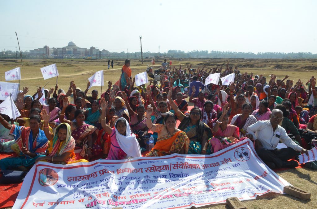 Ranchi news : विद्यालय रसोइया-संयोजिका अध्यक्ष संघ का धरना जारी