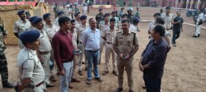 रातू पुलिस बल के जवानों ने रविवार को फ्लैग मार्च किया.