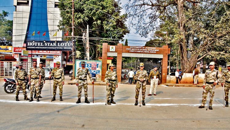 रांची. प्रधानमंत्री नरेंद्र मोदी के रोड शो को लेकर रविवार को सुरक्षा सख्त रही. हर गली के साथ ही महत्वपूर्ण जगहों पर सुरक्षाकर्मी तैनात रहे. सुरक्षा के मद्देनजर सुरक्षाकर्मियों ने दिन के 12 बजे से ही रातू रोड, पंडरा रोड और इटकी रोड की दुकानें बंद करा दीं. केवल दवा दुकानों को ही मुक्त रखा गया था, लेकिन वहां भी सुरक्षाकर्मी तैनात दिखे.