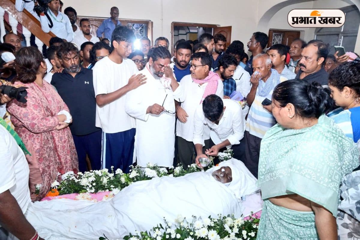 Shibu Soren Funeral PHOTOS: दिशोम गुरु शिबू सोरेन दुनिया को अलविदा कहकर पंचतत्व में विलीन हो गये. कल मंगलवार को पैतृक गांव नेमरा में उनका अंतिम संस्कार किया गया. गुरुजी को अंतिम विदाई देने गांव में लोगों की भारी भीड़ उमड़ी. शिबू सोरेन के पुत्र हेमंत सोरेन ने पिता को मुखाग्नि दी. पिता को अंतिम विदाई देते हुए सीएम फफक कर रो पड़े. उनकी आंखों में आंसू देख वहां मौजूद हर कोई भाव विभोर हो गया.