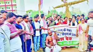 विरोध स्वरूप फ्लाइओवर के ऊपर झंडागड़ी भी की गयी. बैठक के बाद सिरमटोली चौक के पास मुख्यमंत्री हेमंत सोरेन का पुतला जलाया गया.