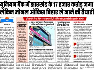 यूनियन बैंक के जोनल ऑफिस को पटना शिफ्ट करने की तैयारी पर राज्य सरकार ने कड़ा एतराज जताया है. वित्तीय वर्ष 2025-26 की शुरुआत में बैंक अपना कामकाज पटना से प्रारंभ करने की तैयारी में जुटा है. अप्रैल से रांची की जगह पटना जोनल ऑफिस से बैंक अपना प्रबंधन चलायेगा