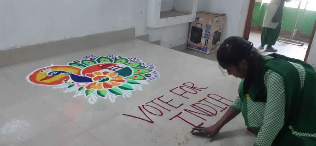 RANCHI NEWS : रंगोली और पेंटिंग से विद्यार्थी कर रहे वोट की अपील