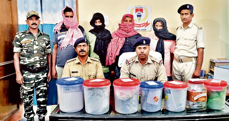 वरीय संवाददाता, रांची. पंडरा ओपी की पुलिस ने 4.5 किलो गांजा के साथ सप्लायर प्रिंस कुमार सिंह (वृंदावन नगर, हेहल) और गुमटी में गांजा बेचने वाले तीन दुकानदार अजीत कुमार साहु, संजय साहु, दामोदर साहु को गिरफ्तार किया है. प्रिंस कुमार सिंह मूल रूप से टंडवा, पलामू का रहनेवाला है. पुलिस को सूचना मिली थी कि आइटीआइ बस स्टैंड के पास तीन दुकानदार अपनी-अपनी गुमटी में गांजा बेचते हैं. एक युवक प्रिंस कुमार सिंह एक झोला में गांजा लेकर उन दुकानदारों को देने के लिए आ रहा है. उसी सूचना पर कोतवाली डीएसपी प्रकाश सोय के नेतृत्व में पंडरा ओपी प्रभारी मनीष कुमार आइटीआइ बस स्टैंड पहुंचे और प्रिंस को गिरफ्तार कर लिया. उसने पुलिस को बताया कि वह बस स्टैंड में तीन दुकानदारों को गांजा सप्लाई करता है. उसकी निशानदेही पर पुलिस ने दुकानदार अजीत कुमार साहु (सुखदेवनगर का मुड़ला पहाड़), दामोदार साहु (पुंदाग के शालीमार बाग व अवधेश नगर), संजय साहु (सुखदेवनगर के न्यू मधुकम महुआटोली ) को गिरफ्तार किया. उनसे पूछताछ की गयी, तो उनलोगों के घर से भी गांजा बरामद किया गया. प्रिंस कुमार सिंंह पर कोतवाली में दो, सुखदेवनगर व डोरंडा में एक-एक मामले दर्ज हैं. जबकि अजीत कुमार साहु पर पंडरा ओपी में एनडीपीएस का एक मामला दर्ज है.