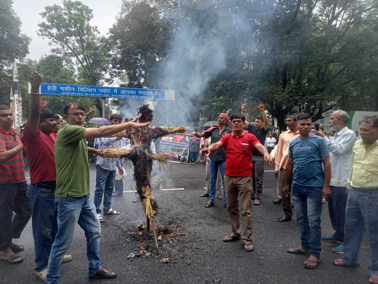 रांची. एचइसी में आउटसोर्सिंग एजेंसी का विरोध कर रहे सप्लाई कर्मियों का आंदोलन शनिवार को 26वें दिन भी जारी रहा. सप्लाई कर्मी नेहरू पार्क से जुलूस के रूप में एचइसी मुख्यालय पहुंचे और प्रबंधन के खिलाफ जमकर नारेबाजी की. सप्लाई कर्मियों ने निदेशक कार्मिक और निदेशक उत्पादन का पुतला दहन किया. इसके बाद सभा को संबोधित करते हुए वक्ताओं ने कहा कि अगर एक सप्ताह में प्रबंधन समस्या का समाधान नहीं निकालता है, तो सप्लाई कर्मी आमरण अनशन एवं आत्मदाह जैसे कदम उठायेंगे.