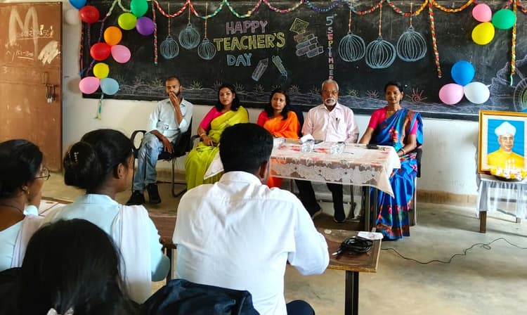 मांडर महाविद्यालय के हिंदी विभाग में शुक्रवार को शिक्षक दिवस मनाया गया. कार्यक्रम में विभाग की विभागाध्यक्ष सेनेल टेटे, डॉ ममता कुमारी बाड़ा, डॉ विवेक कुमार और दिव्या रानी सहित महाविद्यालय के प्रभारी प्राचार्य प्रो गांवा तिग्गा शामिल थे. कार्यक्रम की शुरुआत सर्वपल्ली डॉ राधाकृष्णन के चित्र पर माल्यार्पण व दीप जला कर की गयी. विद्यार्थियों ने गीत, नृत्य, भाषण व अन्य सांस्कृतिक कार्यक्रम प्रस्तुत किये. प्राचार्य प्रो गांवा तिग्गा ने विद्यार्थियों को आशीर्वचन दिया और उनके उज्ज्वल भविष्य की कामना करते हुए उन्हें शिक्षक दिवस के आयोजन के उद्देश्य और महत्व की जानकारी दी. विभागाध्यक्ष सेनेल टेटे ने कहा कि विद्यार्थियों को आगे बढ़ते देखकर शिक्षकों को खुशी मिलती है. हम बस आपको राह दिखा सकते हैं, अपनी मेहनत और ईमानदारी से आपको अपने भविष्य की दिशा तय करनी है. मौके पर अन्ना, संजू, ईशा, संतोषी, रिया, पूनम, सीमा, सुधा, अब्दुल्लाह, बूधन, आशा सहित विभाग के स्नातक और स्नातकोत्तर के अन्य विद्यार्थी उपस्थित थे.मांडर 1, कार्यक्रम में उपस्थित लोग.B