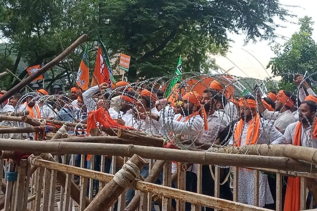 भाजपा ने ऑक्सीजन पार्क और शिबू सोरेन के आवास के पास से सीएम आवास जाने की कोशिश की. लेकिन, पुलिस ने दोनों जगह सख्त घेराबंदी कर रखी थी. दोनों जगहों पर बैरिकेडिंग की गई थी. उसके ऊपर कंटीले तार लगा दिए थे, ताकि आसानी से बैरिकेडिंग को कोई पार न कर सके. पुलिस ने उन्हें चारों ओर से घेरकर उन पर पानी की बौछार शुरू कर दी. लगातार आंसू गैस के गोले भी दागे. भाजपा नेताओं को मैदान में ही कैद कर दिया गया.